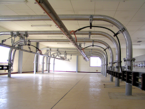 剛体電車線実習設備を使用して、地下鉄、モノレール等で使用されている剛体電車線に関する知識の習得を目的とした実技訓練を行います。