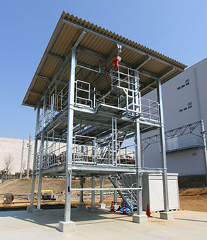 地上5メートルの高さから落下するダミー人形等の墜落による衝撃を見学し、開口部に渡した足場板を歩行することで高所作業における「危険」を体感し墜落事故防止への意識を高めます。