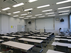 150名の収容が可能な大教室です。ほかに6つの中小教室があります。