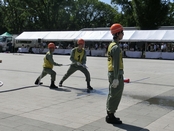 このコンクールは、上野消防署管内の各事業所の自衛消防隊が日頃の訓練成果を披露する場として毎年開催されており、今年は上野恩賜公園噴水広場にて22事業所26チームが参加し、当社からは1チーム(3名)が参加しました。