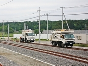 鉄道災害復旧工事の施工(常磐線・山田線・奥羽本線) 当社は、鉄道電気工事の施工に携わる企業として、東日本大震災で被災した常磐線および山田線の災害復旧工事に従事しています。現在も福島県や岩手県の一部区間で不通となっていますが、一日も早い全線開通に向けて復旧工事を進めています。