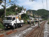 鉄道災害復旧工事の施工当社は、鉄道電気工事の施工に携わる企業として、多くの災害復旧工事に従事しています。今年度は、東日本大震災による被災で未だ不通区間のある常磐線、山田線のほか、6月の大阪府北部地震、7月の西日本豪雨および9月の北海道胆振東部地震で被災した鉄道各線において、電車線路設備や信号設備、踏切設備等の復旧工事に従事しました。