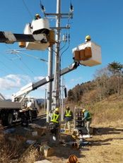鉄道災害復旧工事の施工 当社は、鉄道電気工事の施工に携わる企業として、多くの災害復旧工事に従事しています。