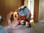 これは、警察の地域における災害対応能力の強化に貢献するため、訓練施設では行うことが難しい建物の破壊を伴う実践的な訓練実施の場として、解体前の同ビルを提供したことにより実現したものです。航空隊によるロープによる建物への降下を想定して、屋上に現着した機動隊レスキュー部隊による降下訓練や警備犬部隊による被災者の捜索など、様々な訓練が行われました。
