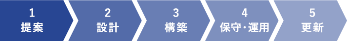 | 5.更新 | お客様の業務拡大や機器の老朽化に伴う、最適なシステム更新を提案いたします。 |