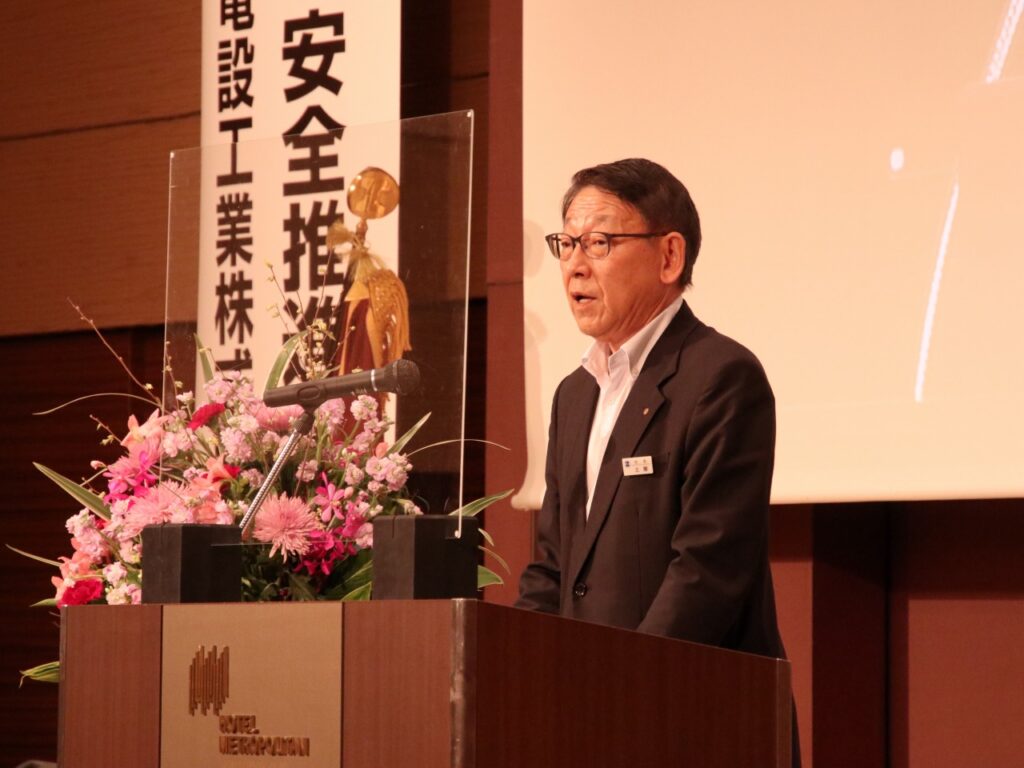 当社では、全国の各支店で安全推進大会を毎年開催し、安全推進実行計画の説明や安全表彰など、協力会社様も含めた安全への取り組みを実施しており、本大会にはご来賓のほか土屋忠巳社長以下役員、社員、協力会社様等関係者100名が出席しました。今年度はコロナ禍を考慮し会場への出席者を限定するとともに、社員および協力会社社員がWeb会議により端末で視聴できる形式をとりました。