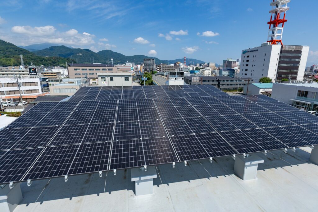 新社屋は、環境性能に優れたZEB(ネット・ゼロ・エネルギー・ビルディング)仕様となっており、省エネ性能と防災機能を兼ね備えた施設として整備されています。屋上には太陽光パネルを設置しており、災害時には太陽光発電と蓄電池による電力供給により、携帯電話の充電なども可能です。