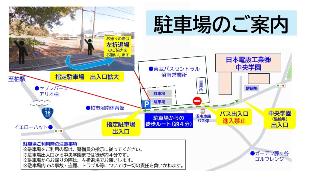※中央学園内および駐車場内での事故・窃盗、トラブル等は一切の責任を負いかねます