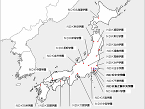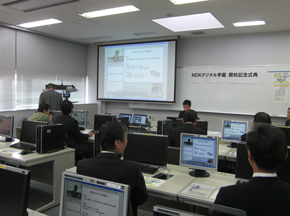 NDKデジタル学園は、テレビ会議システムを活用して、映像、音声、データをやり取りすることにより双方向かつリアルタイムな教育を可能とし、講師が中央学園にいながら、社員は全国の拠点(22箇所)で研修を受けることができるシステムで、2010年10月から運用を開始しています。