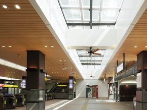 当社は、同駅のホームやコンコース等の照明のLED化【省エネ】をはじめ、屋上への太陽光発電設備の設置【創エネ】等の電気設備の施工を担当しました。