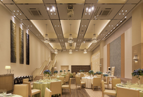 当社は、披露宴会場用の舞台音響・照明設備をはじめとするすべての電気設備工事を施工しました。